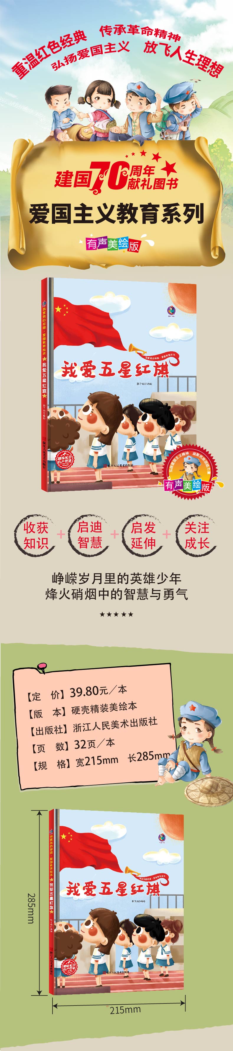 商品名称:我爱我的祖国 爱国教育 我爱五星红旗 浙江人民美术出版社 一年级上册课外阅读书籍 我爱我的祖国爱国教育绘本图画书 红色经典爱国主义教育读本