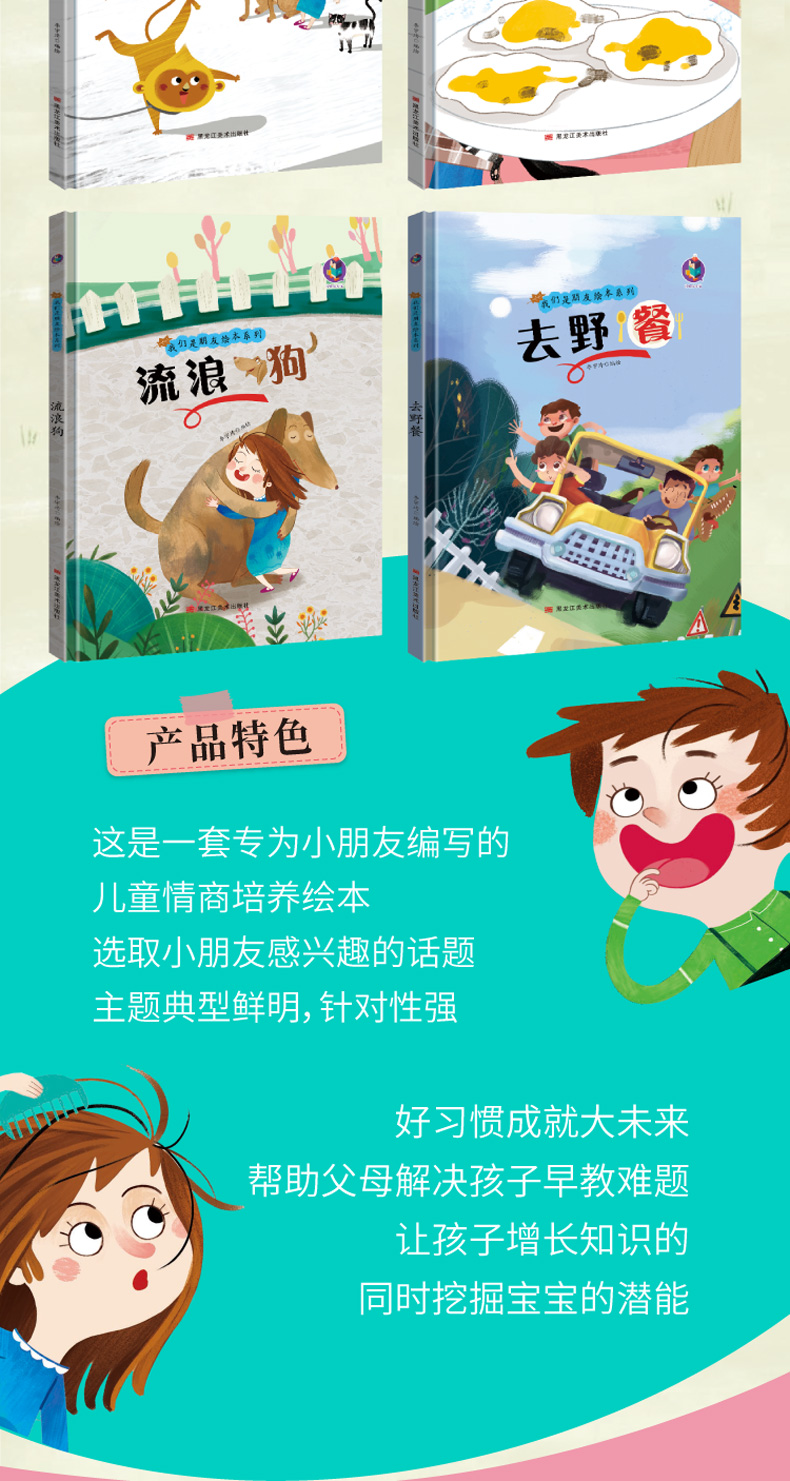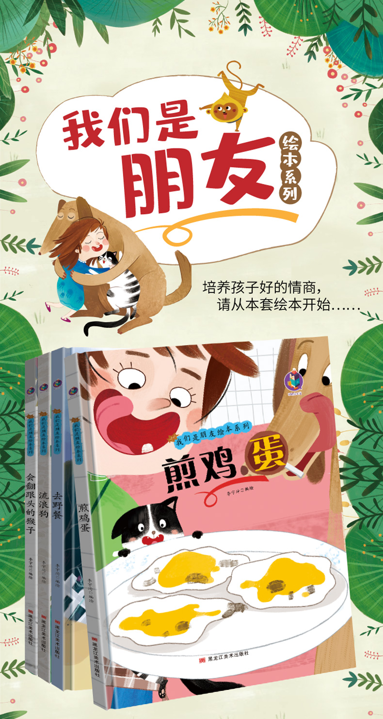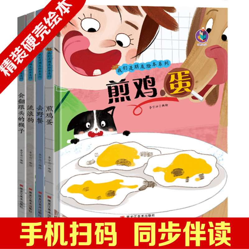 商品名称:我们是朋友绘本系列全4册 煎鸡蛋/流浪狗/去野餐/会翻跟头的猴子/黑龙江美术出版社/ 幼儿园宝宝精装硬皮硬壳绘本 3-6-9岁幼儿童启蒙早教图画故事绘本