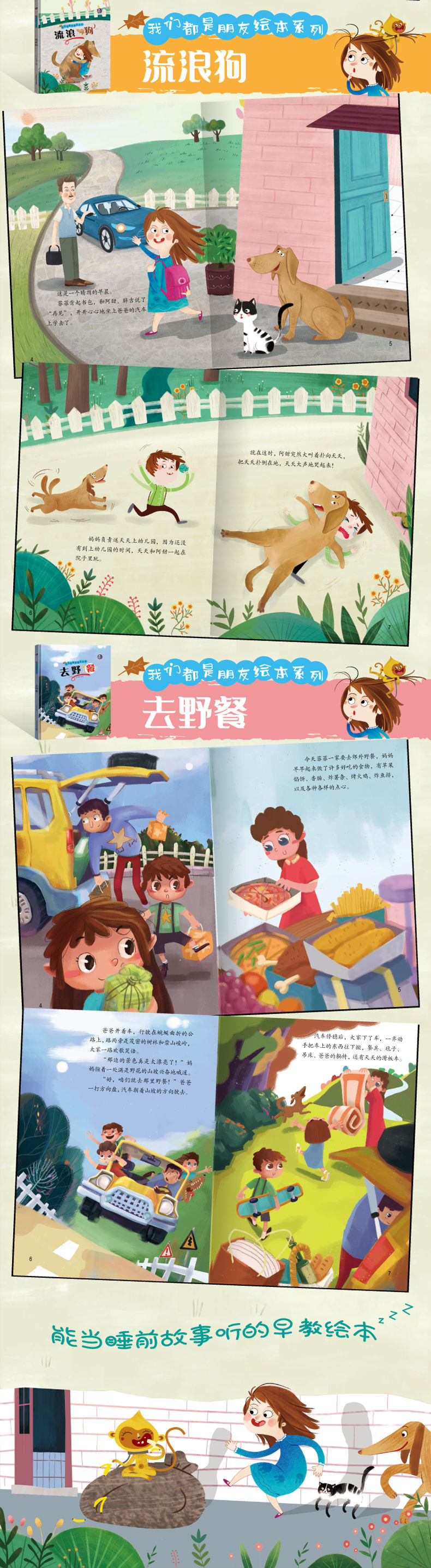我们是朋友绘本系列全4册 煎鸡蛋/流浪狗/去野餐/会翻跟头的猴子/黑龙江美术出版社/ 幼儿园宝宝精装硬皮硬壳绘本 3-6-9岁幼儿童启蒙早教图画故事绘本