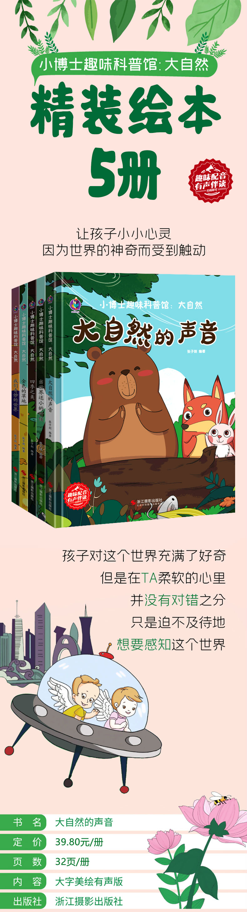 商品名称:小博士趣味科普馆全套5册/大自然的声音 /当世界还小的时候 /金色的草地 /四季之美/ 我们奇妙的世界 /浙江摄影出版社/大自然里的故事秘密启蒙绘本 3-6岁宝宝早教图画故事书 亲子共读睡前故事书