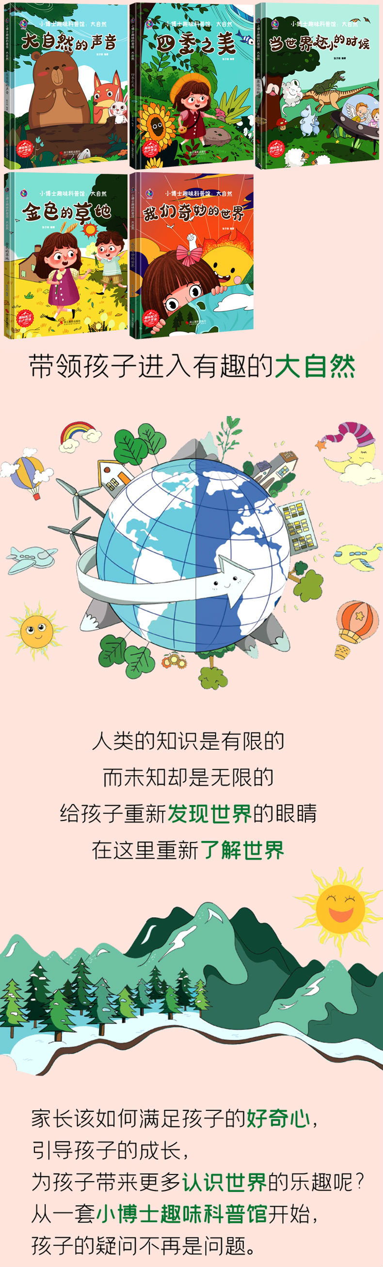 小博士趣味科普馆全套5册/大自然的声音 /当世界还小的时候 /金色的草地 /四季之美/ 我们奇妙的世界 /浙江摄影出版社/大自然里的故事秘密启蒙绘本 3-6岁宝宝早教图画故事书 亲子共读睡前故事书