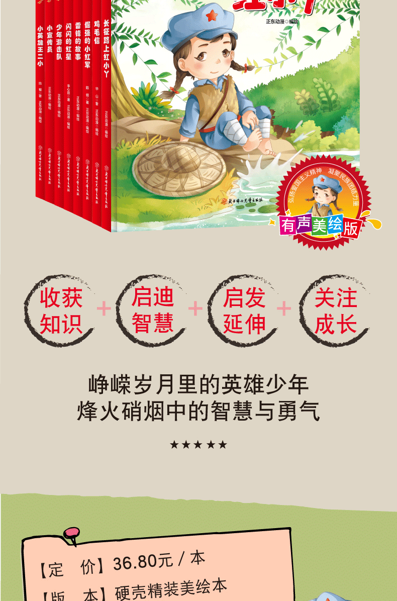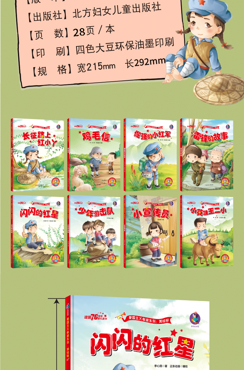 商品名称:爱国主义教育系列 美绘版系列8册/长征路上红小丫/ 鸡毛信 /倔强的小红军/ 雷锋的故事/闪闪的红星 /少年游击队 /小英雄王二小 /小宣传员/北方妇女儿童出版社/精装绘本二三四年小学生课外阅读亲子共读睡前故事书