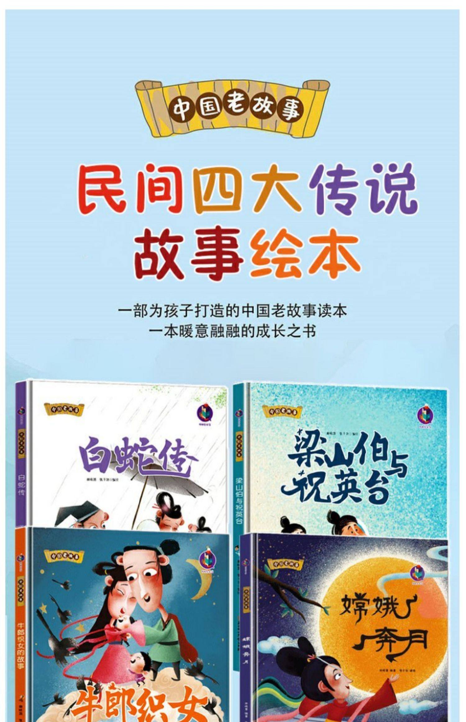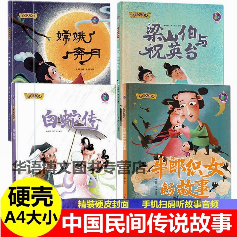 商品名称:中国老故事4册 白蛇传 梁山伯与祝英台 嫦娥奔月 牛郎织女的故事 北方妇女儿童出版社 中国民间四大传说绘本老故事