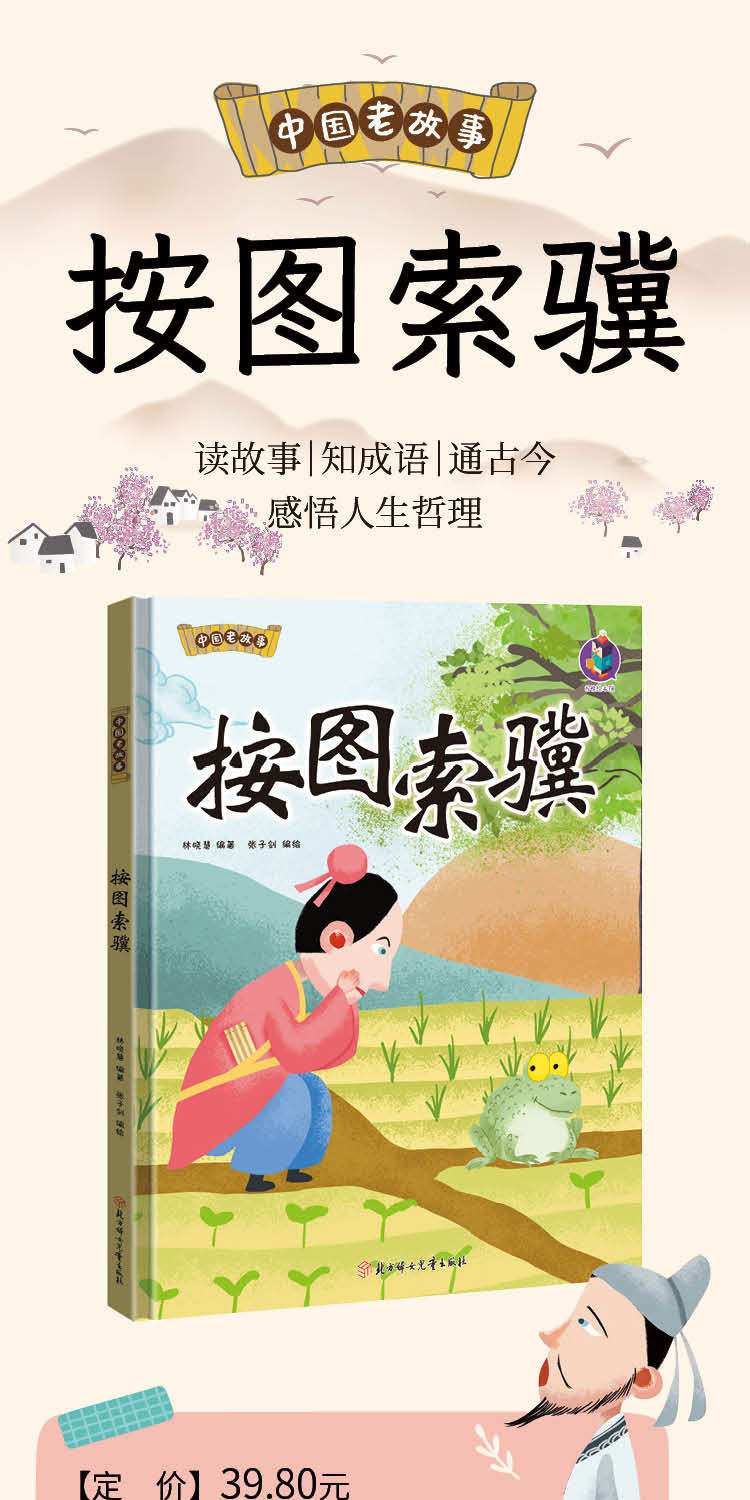 中国老故事-按图索骥 正版精装硬壳硬皮儿童绘本0-3-5-6岁A4大小幼儿园绘本启蒙故事书儿童书籍读物大中小班绘本 北方妇女儿童出版社