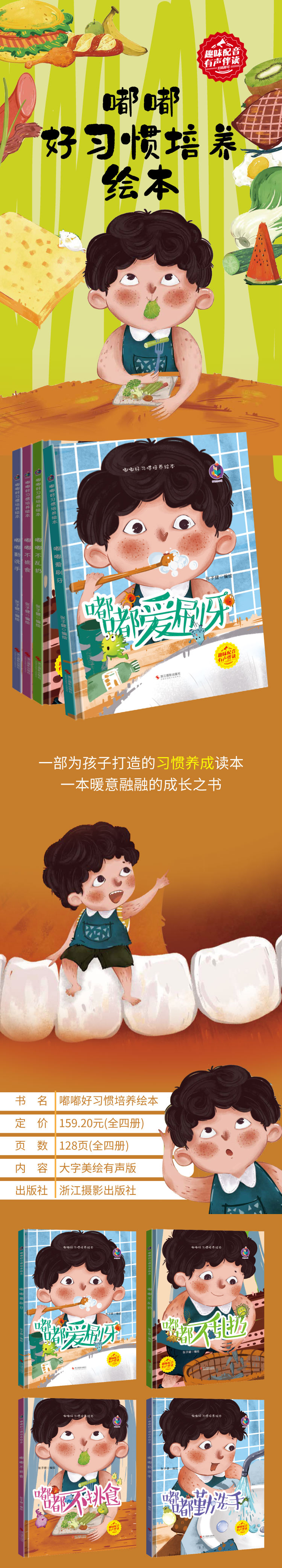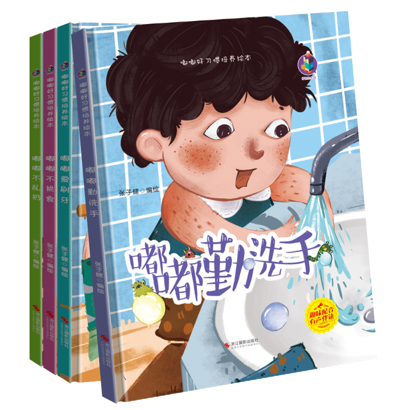 商品名称:嘟嘟好习惯培养绘本全4册 嘟嘟不挑食+嘟嘟爱刷牙+嘟嘟勤洗手+嘟嘟不乱扔扫码有声伴读精装版 幼儿园大中小班精装硬壳绘本儿童好习惯早养成系列绘本 浙江摄影出版社