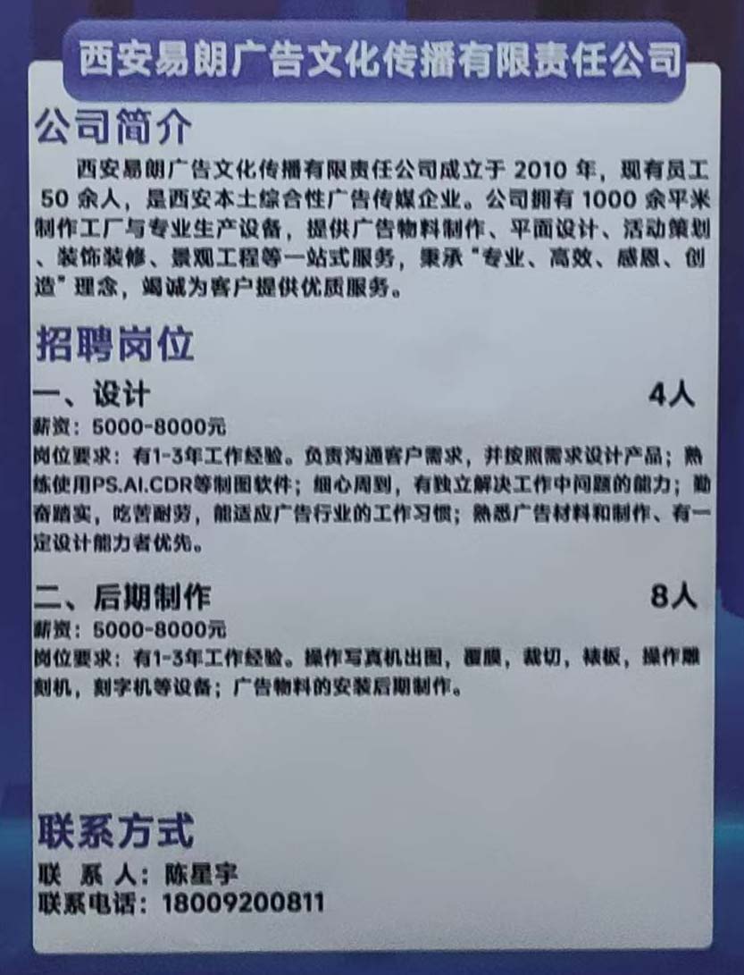 商品名称:西安易朗广告文化传播有限责任公司招聘:设计,后期制作