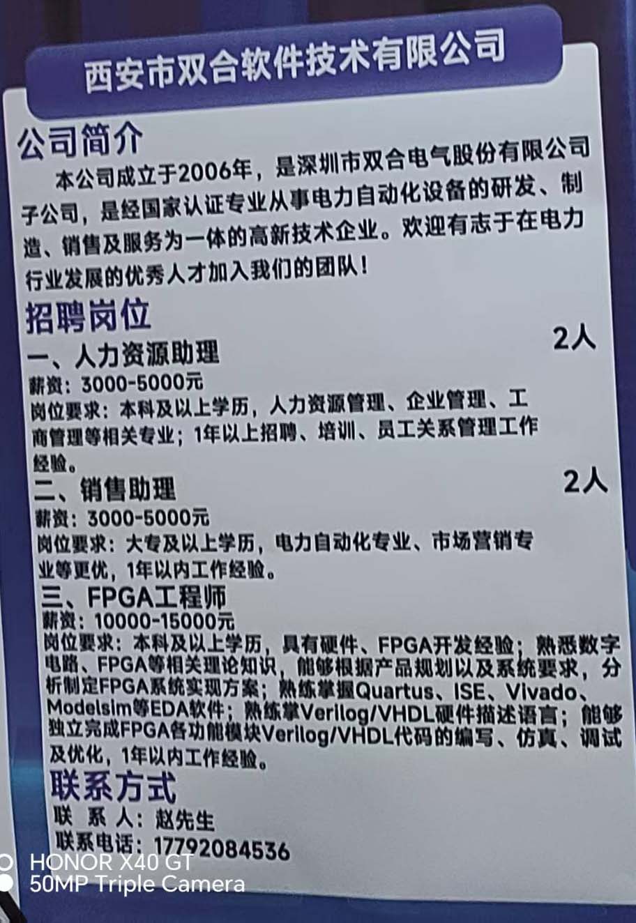 商品名称:西安双合软件技术有限公司招聘:FPGA工程师 人力资源助理 销售助理