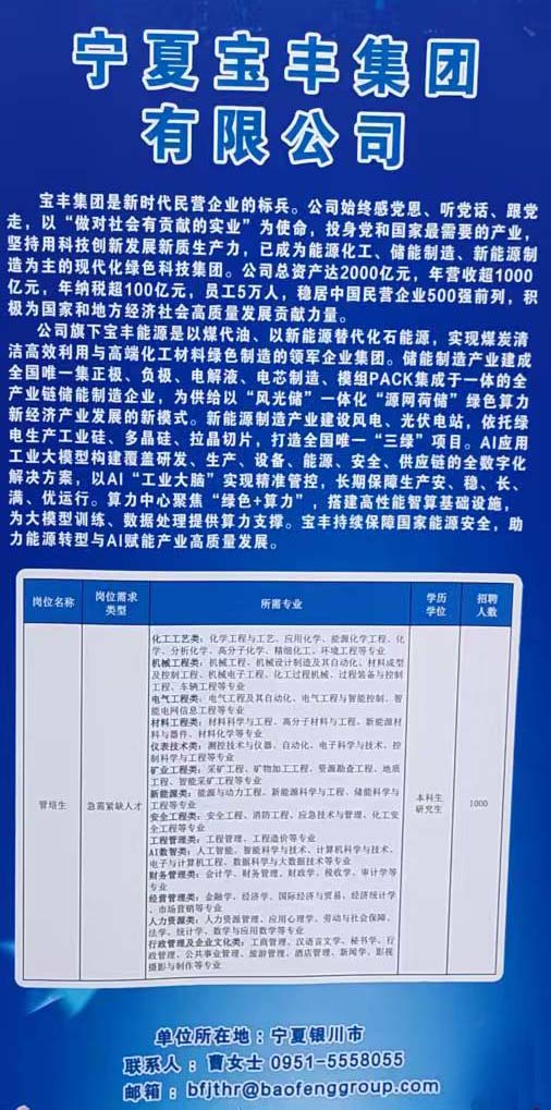 商品名称:宁夏宝丰集团有限公司招聘:管培生