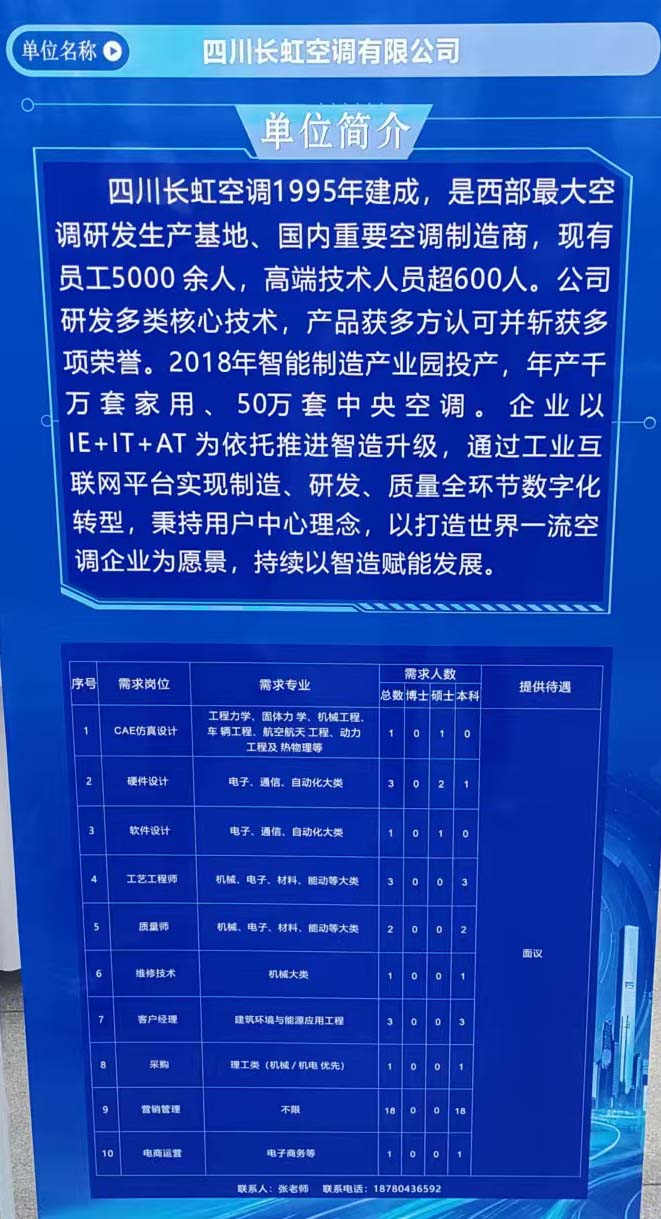 商品名称:四川长虹空调有限公司招聘:电商运营 CAE仿真设计 硬件设计 软件设计 工艺工程师 质量师 维修技术 客户经理 采购 营销管理