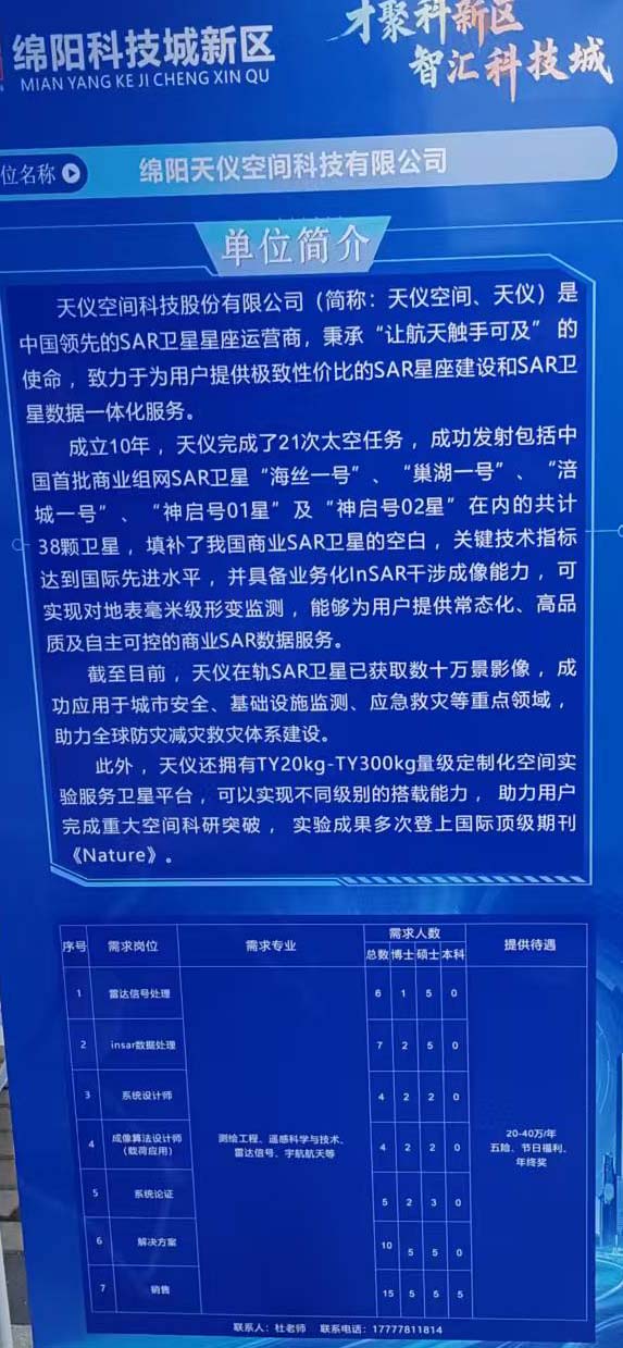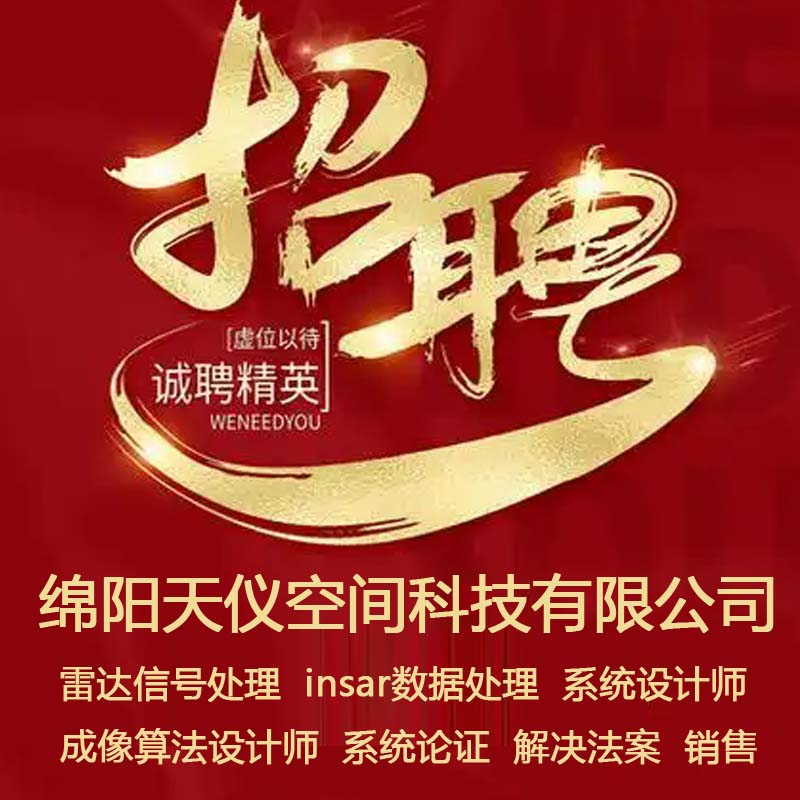 商品名称:绵阳天仪空间科技有限公司招聘:雷达信号处理 insar数据处理 系统设计师 成像算法设计师 系统论证 解决法案 销售
